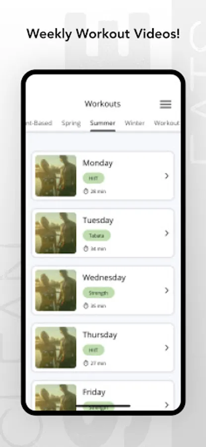 • Follow weekly workout schedules created by fitness gurus, JJ and Erika Peterson