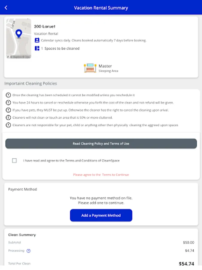 CleanSpace is also designed for customers who have a vacation rental home and struggle with finding a reliable cleaner or managing their cleaning experience.
