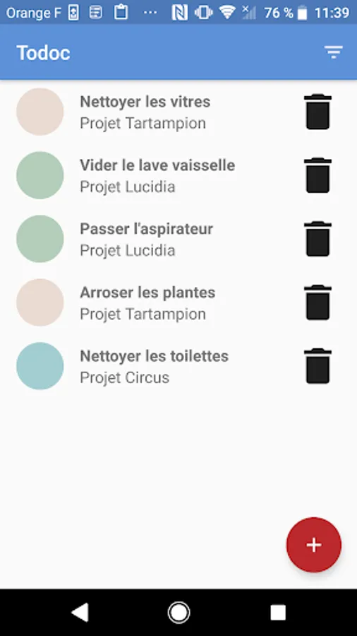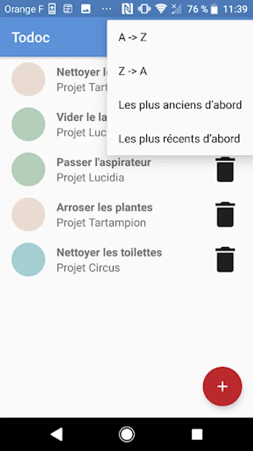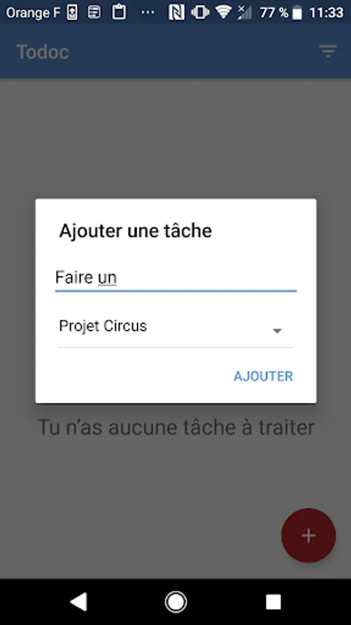 ● You can add a task to perform. This is assigned to a project when it is created. For the moment, only 3 projects are managed: "Project Tartampion", "Project Lucidia" and "Circus Project".
