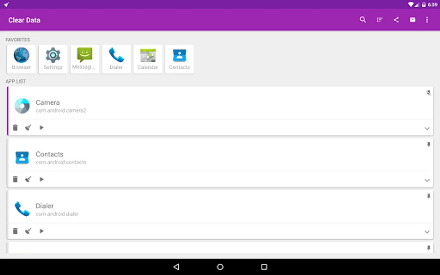 Clear Data will help you reach the device App Info screen for any application as fast as possible, with 1 tap from anywhere.