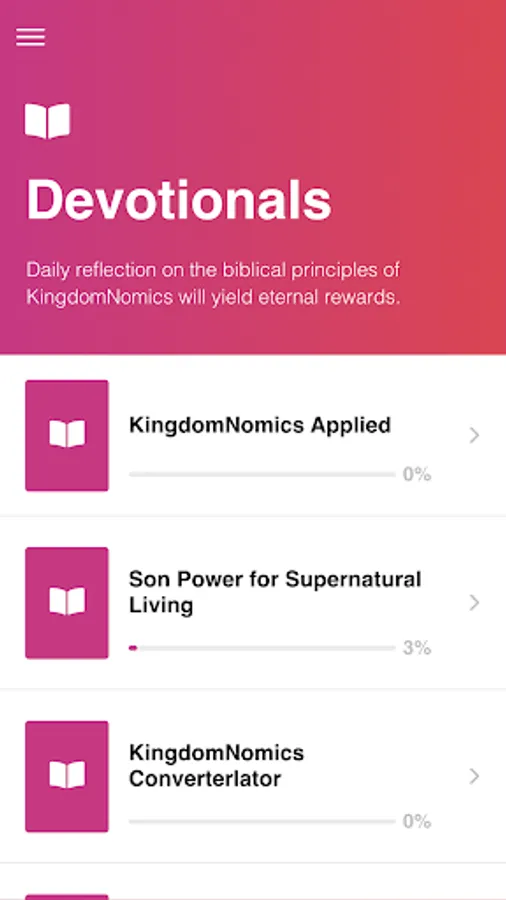 Choose from eight devotional series to help you focus each day on the biblical principles of KingdomNomics that will yield eternal rewards.