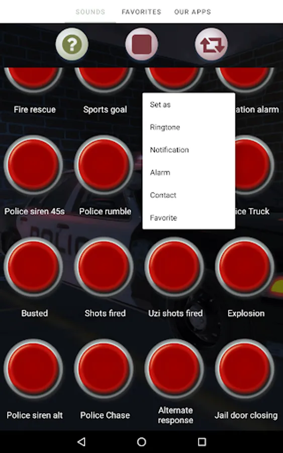 You can save your favorite police sounds to a custom sound board containing just your chosen sounds so you can always have them ready. You can also use these loud police sounds as ringtones so you will always be able to hear your phone, text message notification or alarm.