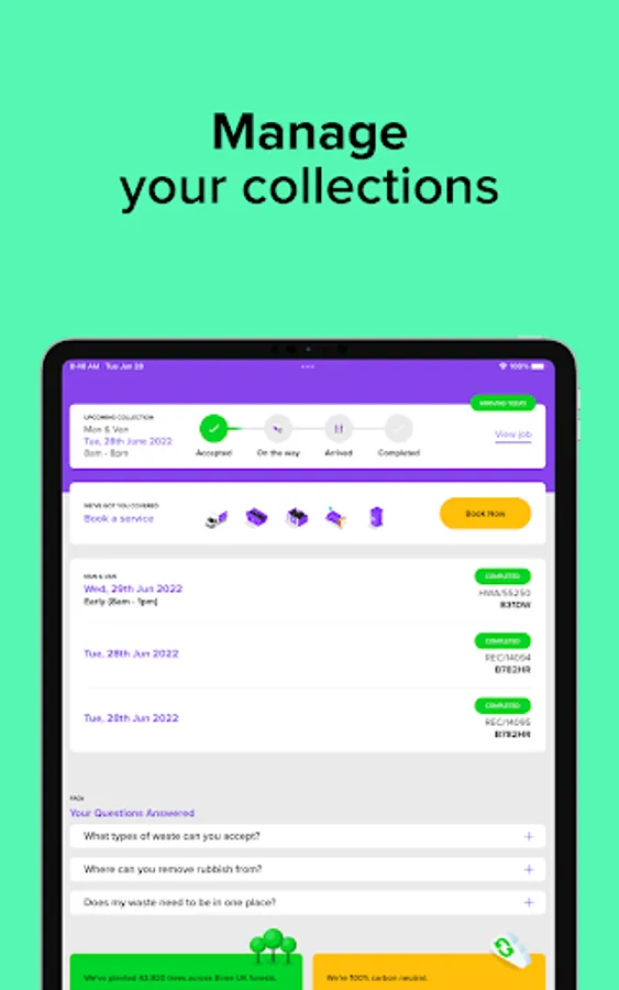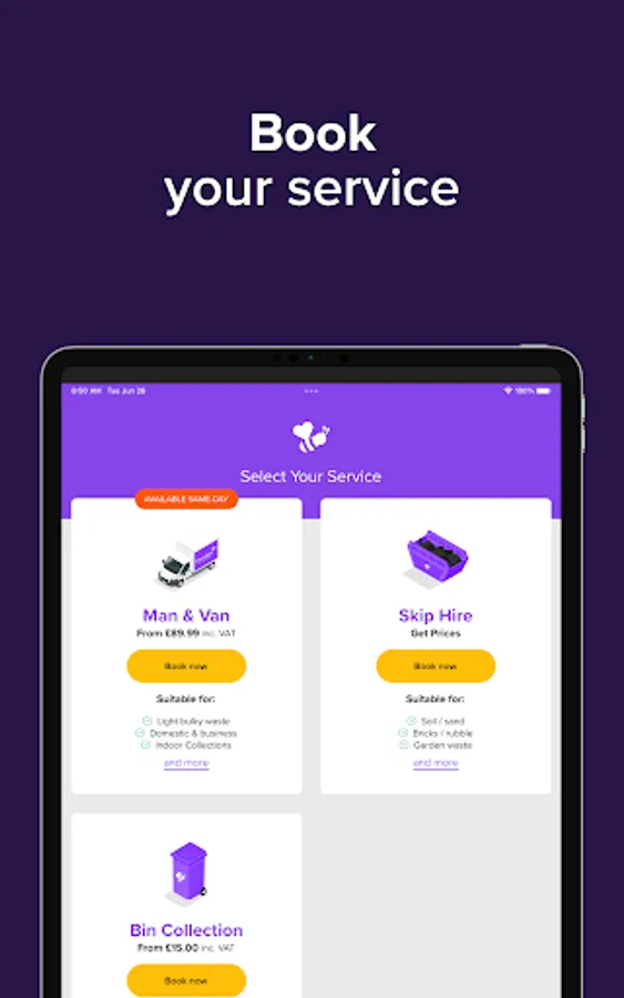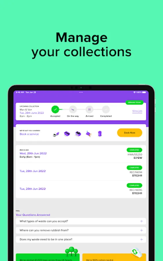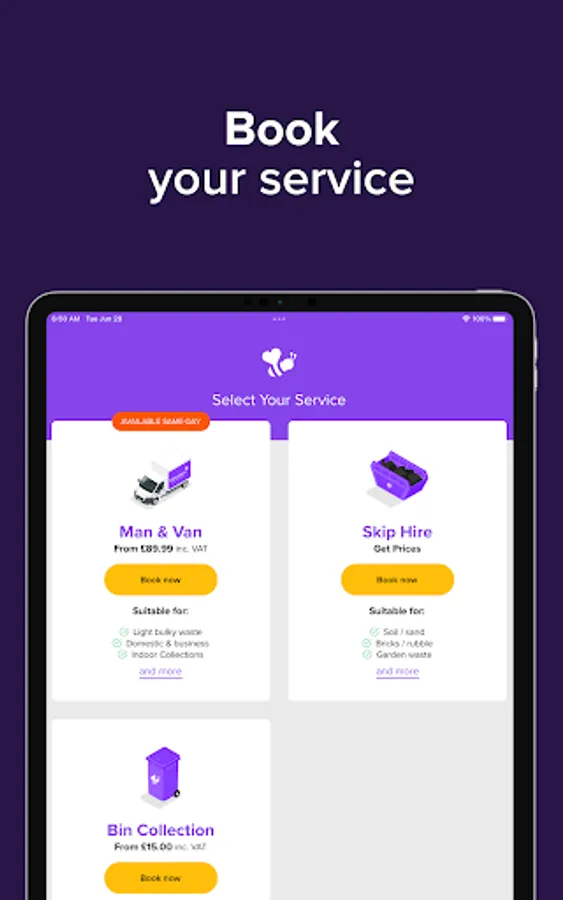 Use the brand new Clearabee app that has been designed to make getting rid of rubbish as quick and as convenient as possible. Each step of your order has been carefully considered, so that booking a Clearabee waste removal will only take a couple of short minutes. Once booked, services such as our ‘Man & Van’ collection can be at your door to remove waste on the very same day of your enquiry. Creating an account will allow you to track pending and past rubbish collection jobs. It will also make checking out even quicker with efficient personal and payment details management.