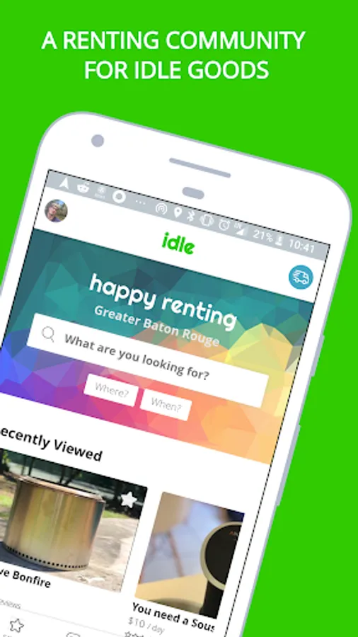 Discover a new way to make the most of your idle goods with Idle - the leading peer-to-peer rental app. Embrace the power of the sharing economy and connect with your local community to rent anything, anytime. Whether you're looking to borrow a power drill for a quick home repair or you've got camping gear gathering dust, Idle is the perfect platform to meet your needs. Rent safely, securely, and sustainably with Idle. Download the Idle app today - your go-to solution for peer-to-peer rentals.