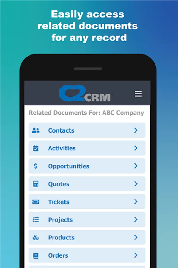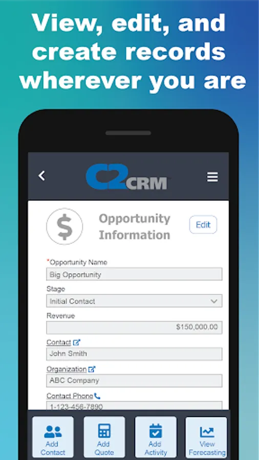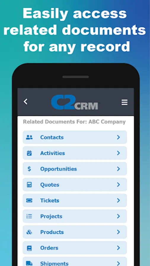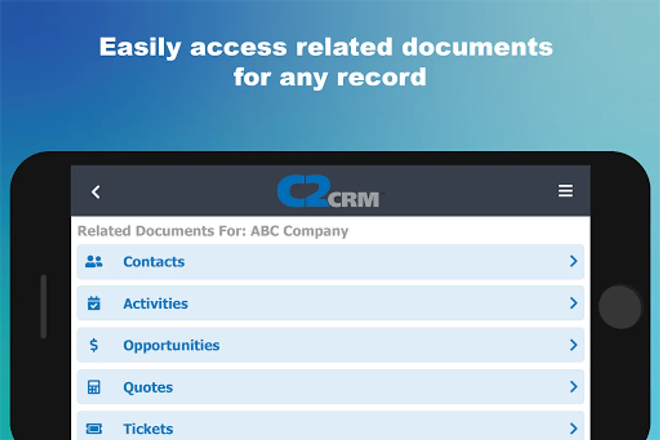 Experience the same C2CRM functionality on any mobile device as you would on our desktop application: