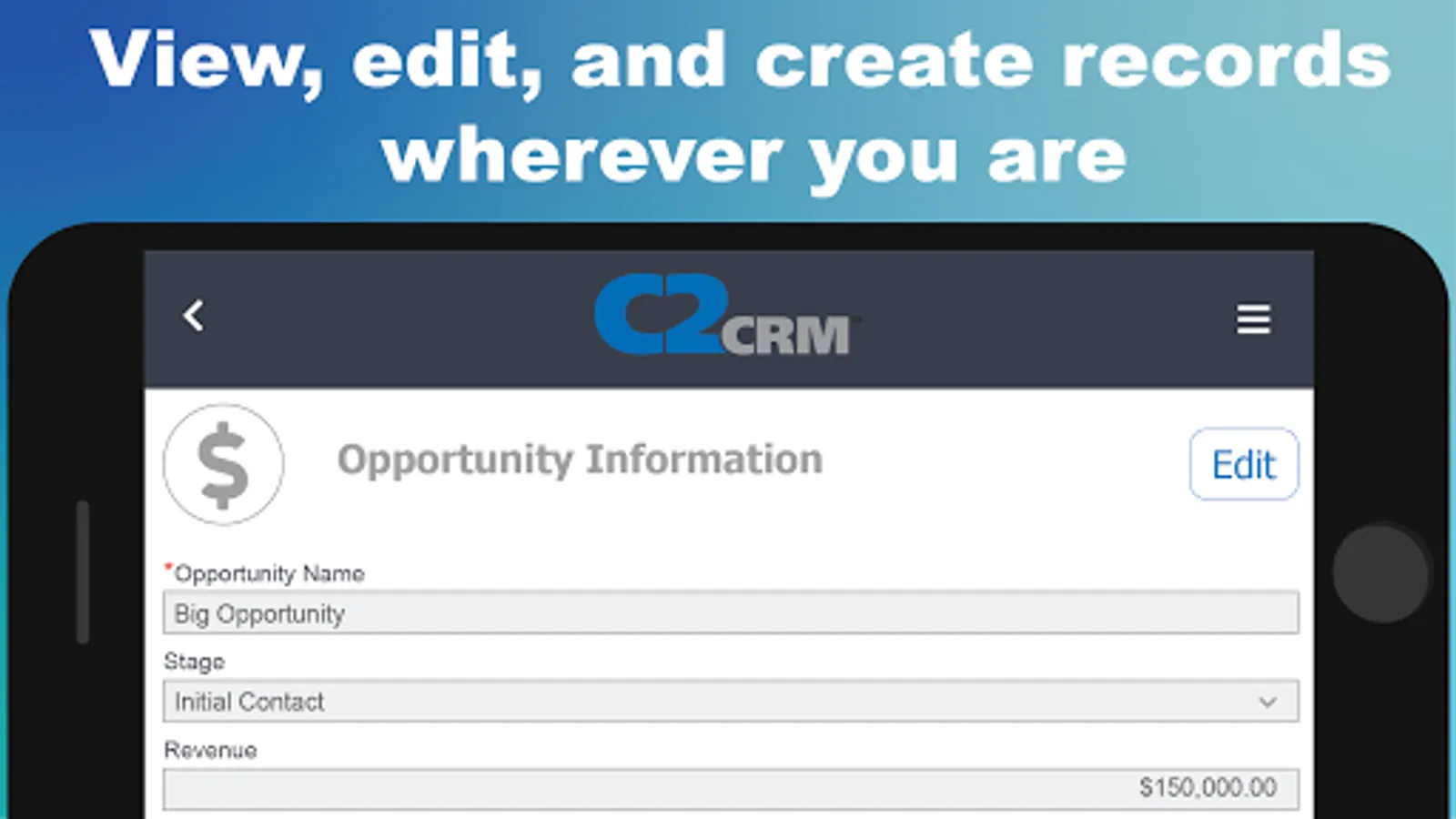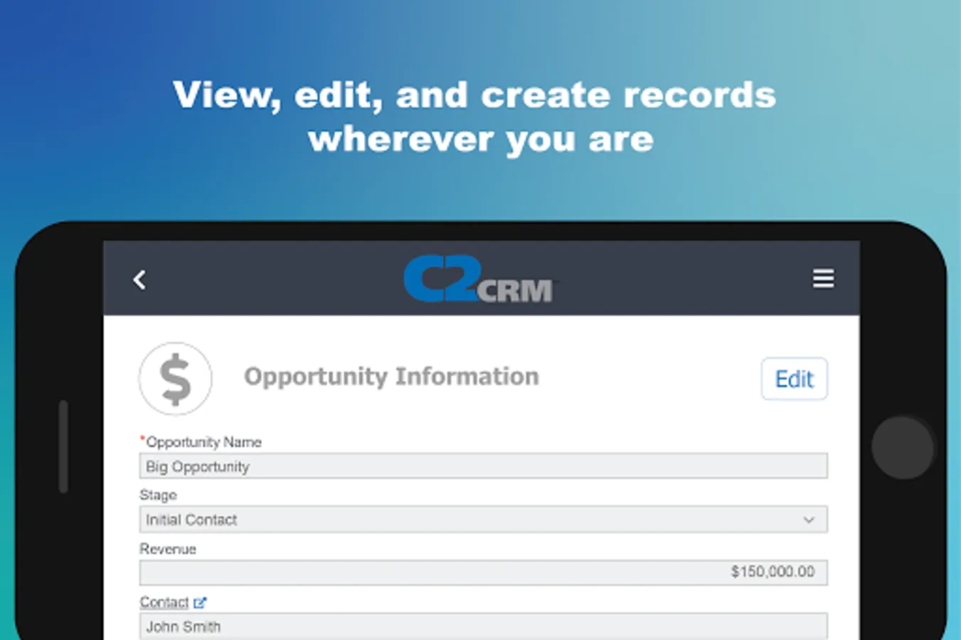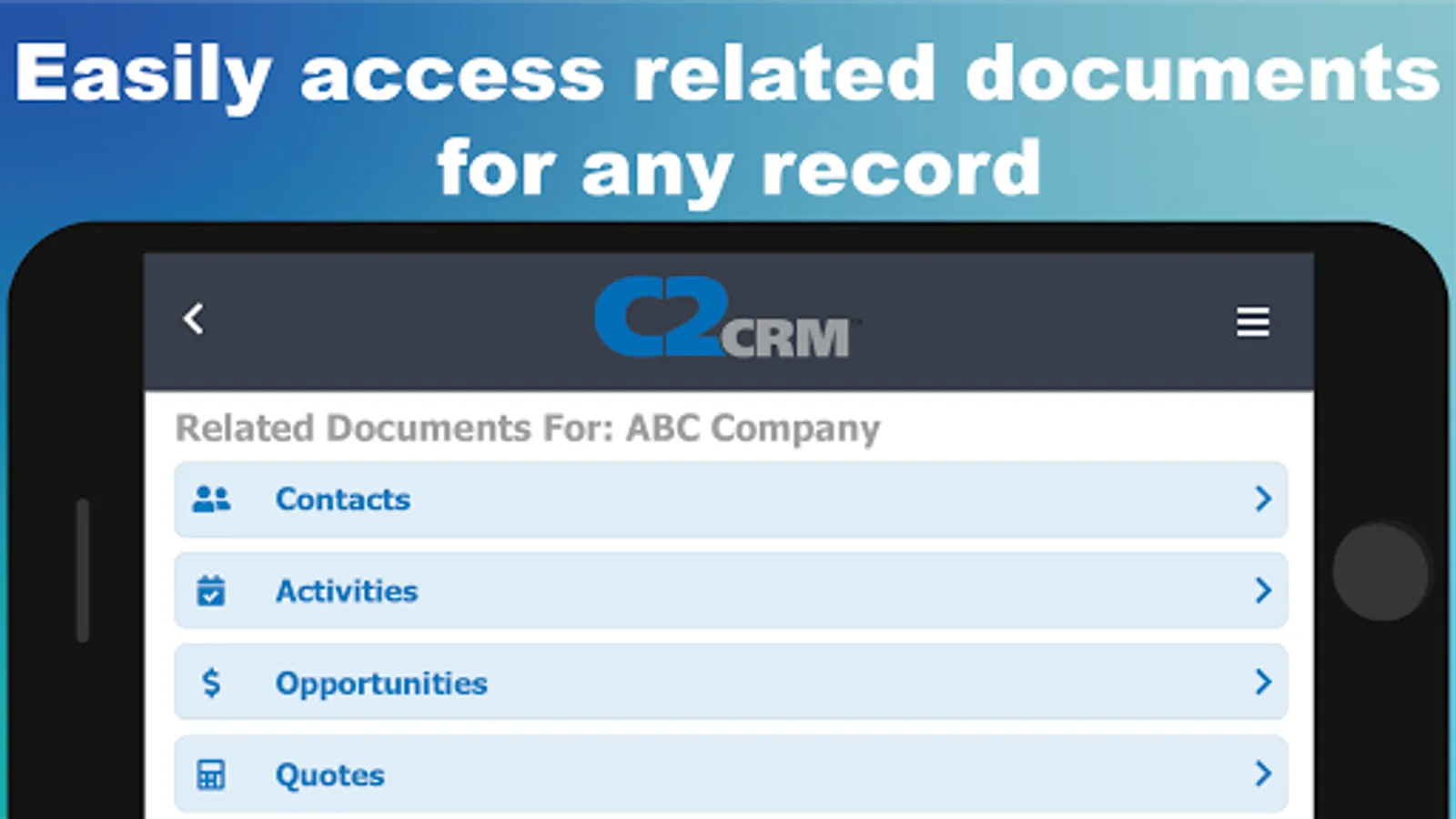 Experience the same C2CRM functionality on any mobile device as you would on our desktop application: