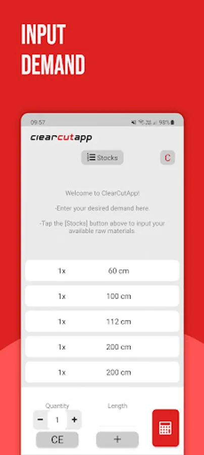 ClearCutApp is about more than just cutting. It's about redefining your cutting process to save time, money, and valuable resources. No more guesswork, no more unnecessary waste. With ClearCutApp, you're in control. You set your stocks, define your demand, and let our algorithm work its magic.