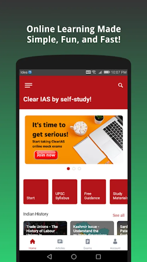 The ClearIAS Learning app is designed to make online learning for UPSC Civil Services Examination (CSE) simple, fun, and fast. This app makes browsing through thousands of ClearIAS online notes and study-materials a pleasant experience. The ClearIAS learning app is ideal not just for IAS aspirants but for anyone who loves learning.