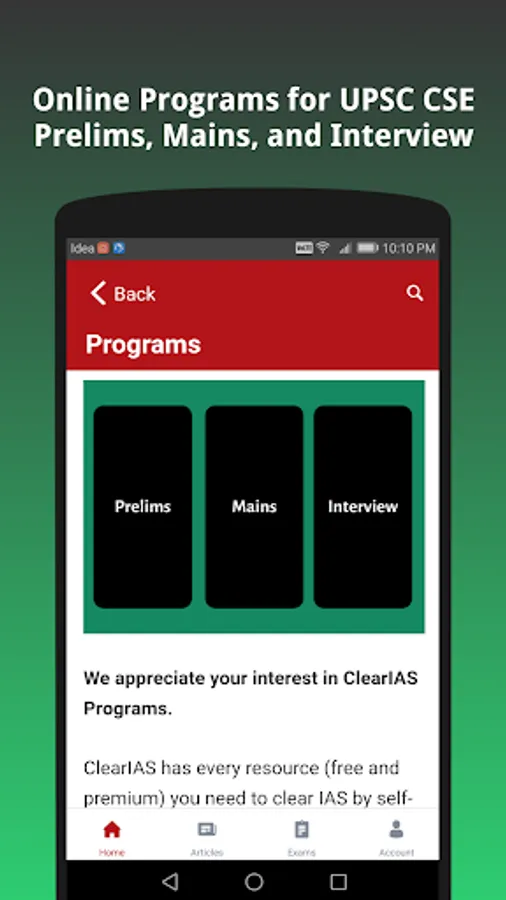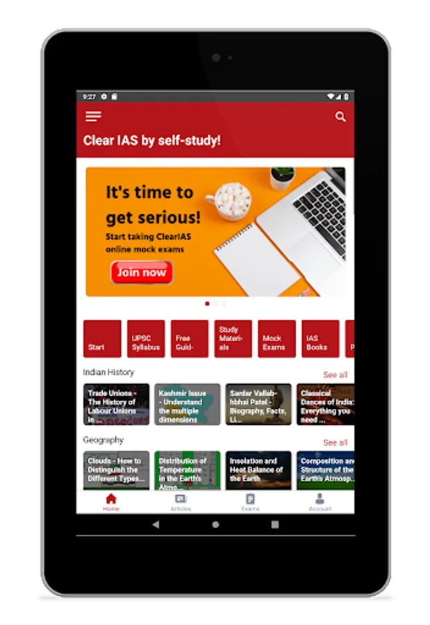 ClearIAS Learning App is designed to help users clear the IAS exam by self-study! This app provides almost everything an aspirant need to clear UPSC Civil Services Exam including guidance, study-materials, and mock-exams.
