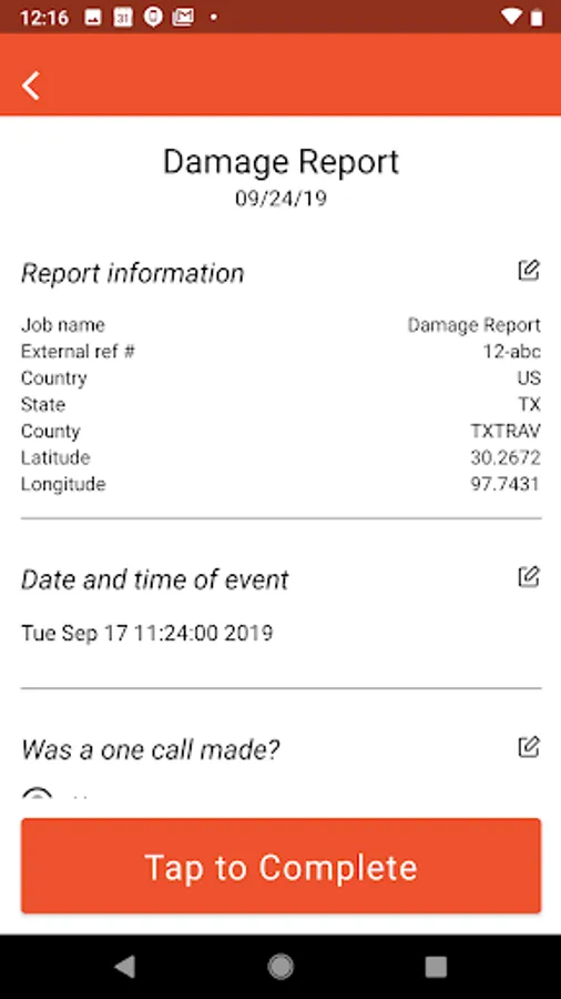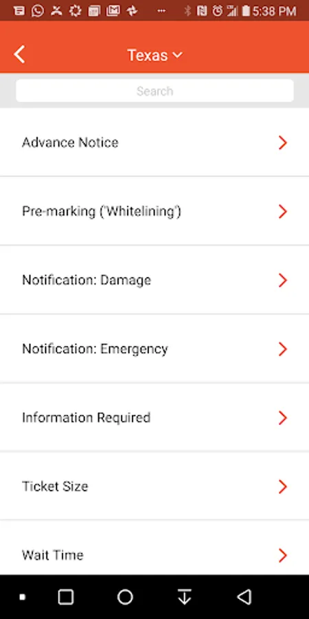 • In-app links to 811 notification centers – both telephone and web – by state.