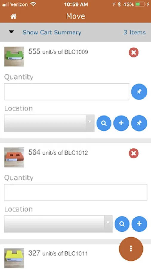 -Store units of items in multiple locations