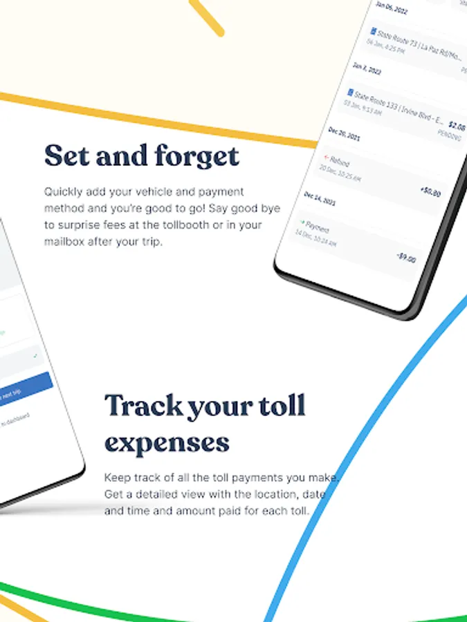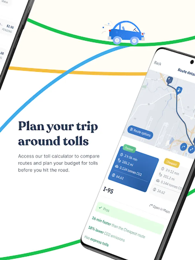 Use the app to track your toll expenses, plan tolls to navigate your trips, manage multiple vehicles, and offset your carbon footprint with a single account.
