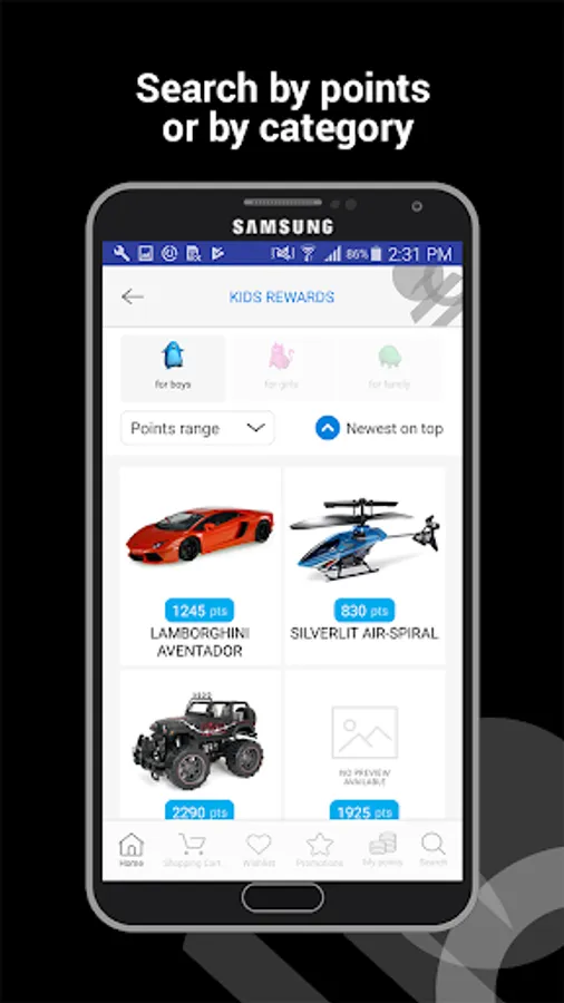 Browse the Audi Rewards app to view all the gift options you can redeem your points against. This user-friendly platform allows you to choose among Audi Rewards, Travel Rewards, and Kids Rewards. Search by category or by points, so you get the result that suits you. Redeem your points on the spot or plan ahead by setting your wish list. The process is smooth on the app, where you can submit your final redemption request.