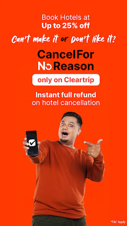 Trying to find Flights & looking for Hotels nearby? Or simply delaying your trip due to excuses? For every problem of the undecided traveler, there’s one solution : Cleartrip. Get up to 15% off on Domestic Flights along with Hassle free cancellations on bookings.