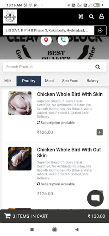 Cleaver & Block offers high quality premium & fresh Online delivery of Meat, Seafood, Dairy products, poultry at best price. Explore our variety of meat and dairy subscriptions, you will love cleaver & block for it's for its commitment to ethical meat, high-quality cuts, and great customer service. Our main focus is delivering supplies right to your doorstep within 30 min with all kind of payment options and free delivery.