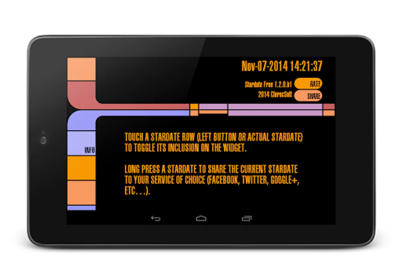 Share #Stardate hashtag + current Stardate to social media, email, etc... via long-press functionality.