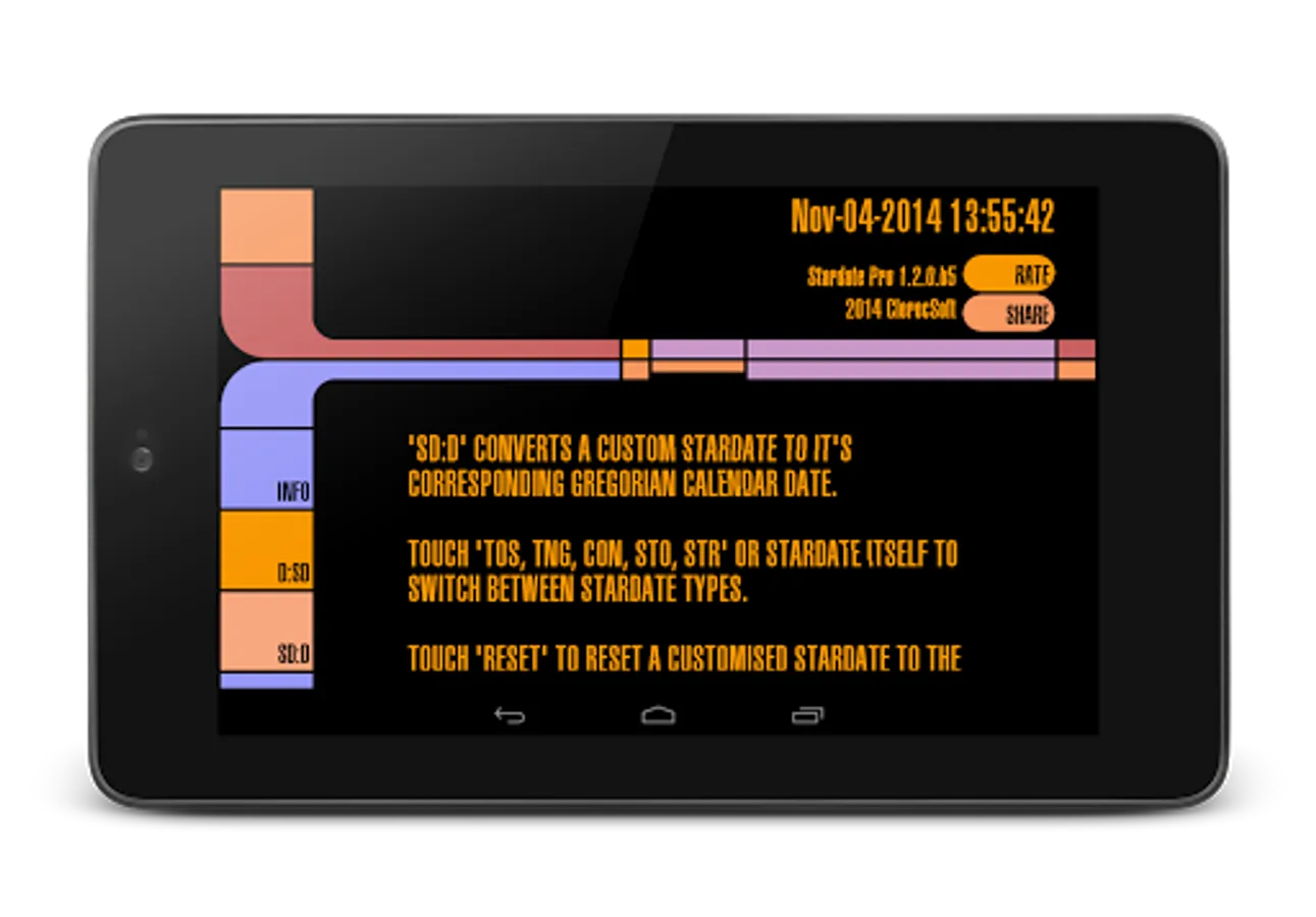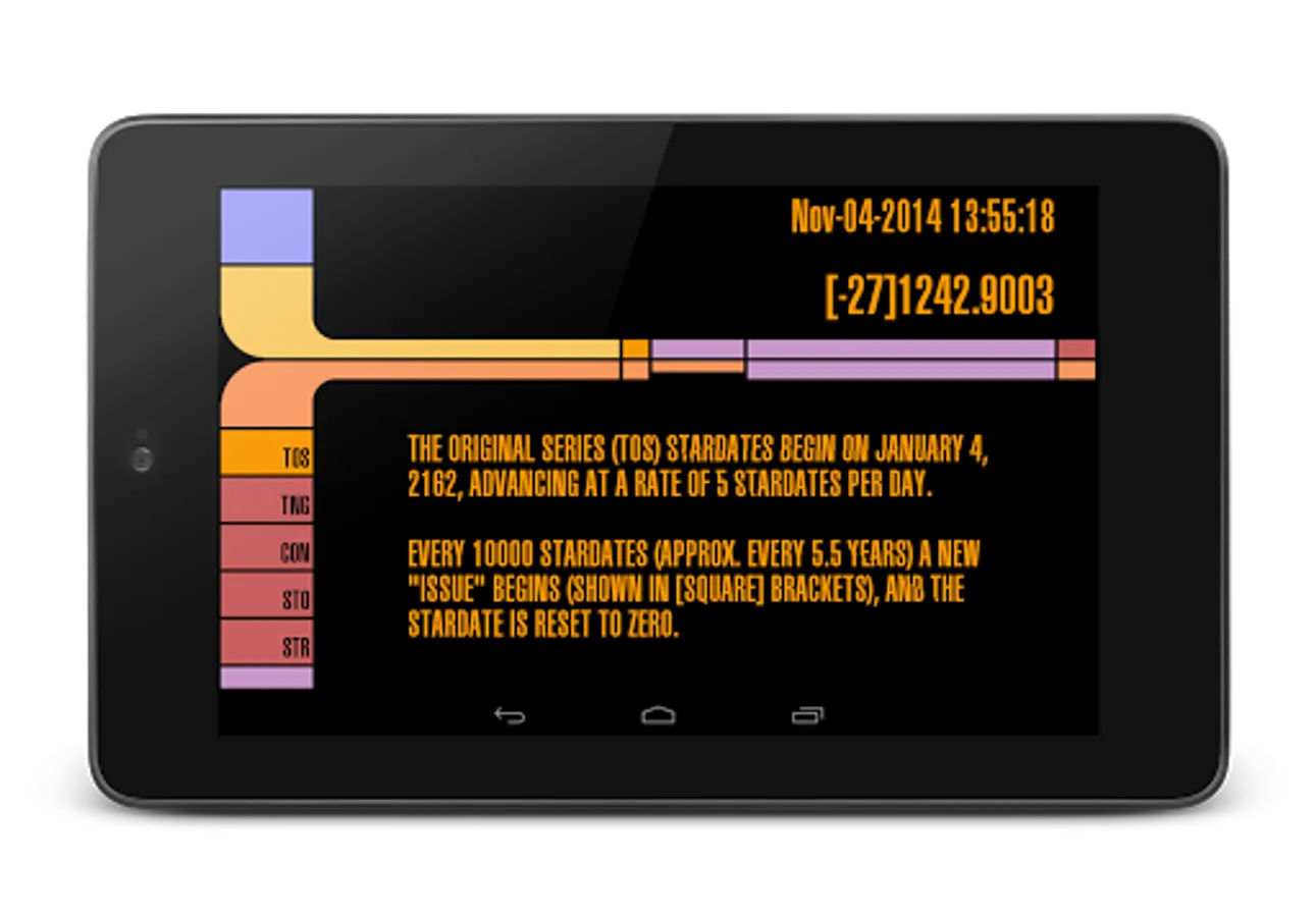 "Stardate" is a current Gregorian Calender date -to- Star Trek Stardate converter featuring:
