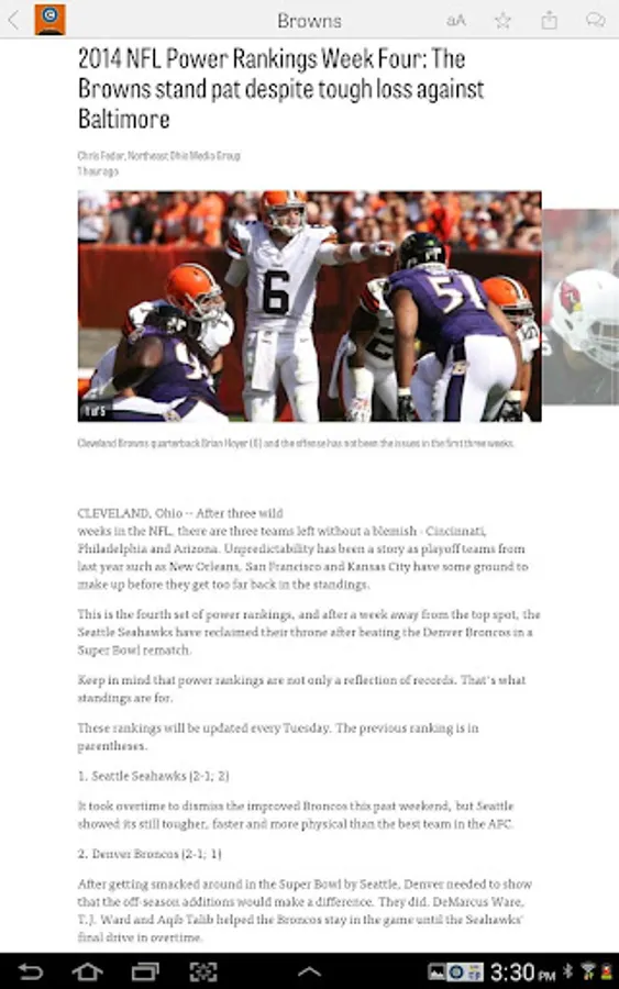 The cleveland.com: Cleveland Browns News app gives Browns fans exclusive access to the latest news, videos and photo slideshows from cleveland.com. Read exclusive articles about the Browns and other rival teams, catch live Twitter updates from fans and experts, and submit photos from the game.