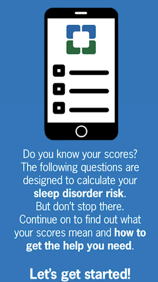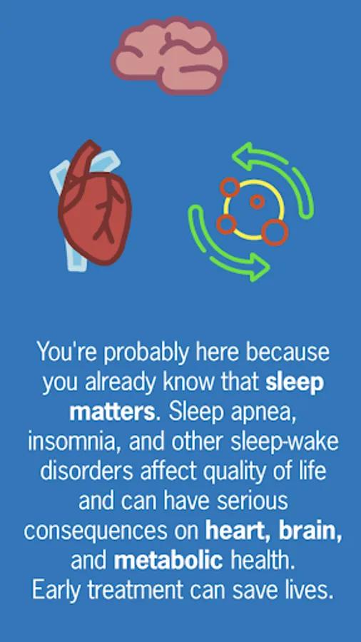 At least one in 3 adults live with sleep problems that diminish their health, happiness, and safety, but many aren’t even aware of the risks they face. This app was created by sleep health experts to help you assess your risk for sleep disorders and learn how to get your best night’s sleep.