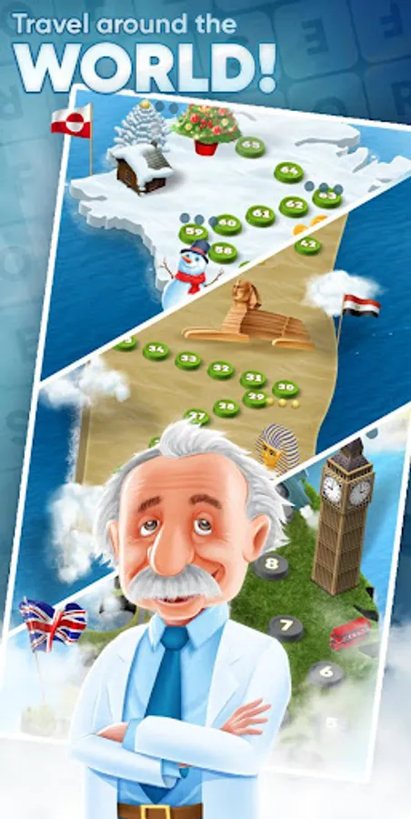 The professor, combining various types of games scattered along a huge map contains of different countries which were designed with real territory lines and landmarks!
