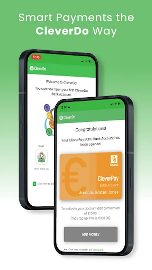 CleverDo is a mobile application that offers a range of banking and financial services to its users. With the CleverDo App, you can open a EUR IBAN bank account with no monthly fees and no minimum monthly deposits. The account can be activated in just a few clicks, and your account will be ready in minutes.
