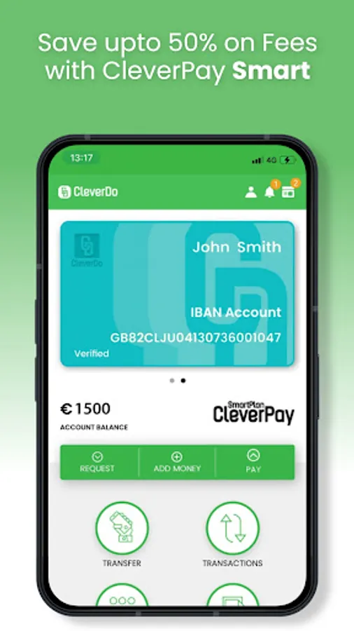 With the CleverDo App, you can enjoy easy onboarding, an EUR IBAN bank account, and a range of services that include receiving and sending money instantly via SEPA to other bank accounts or other CleverDo users. You can also request money from other CleverDo users and view your transaction history.
