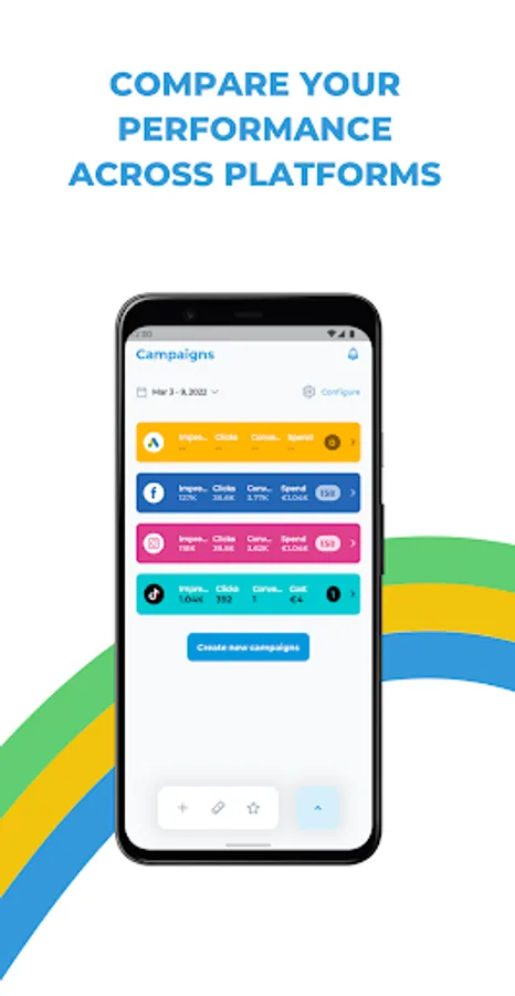 • Compare your performance across advertising platforms and balance your budget.