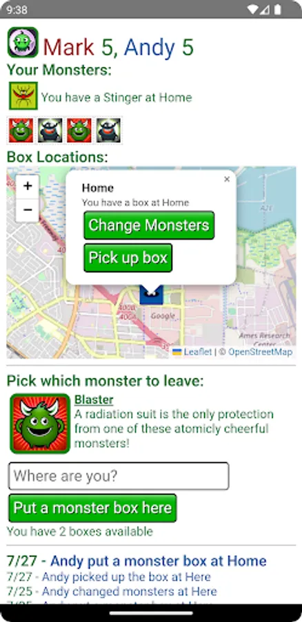 Put your boxes anywhere you want and choose which monster to hide in the box. (Location permissions are required to play.)
