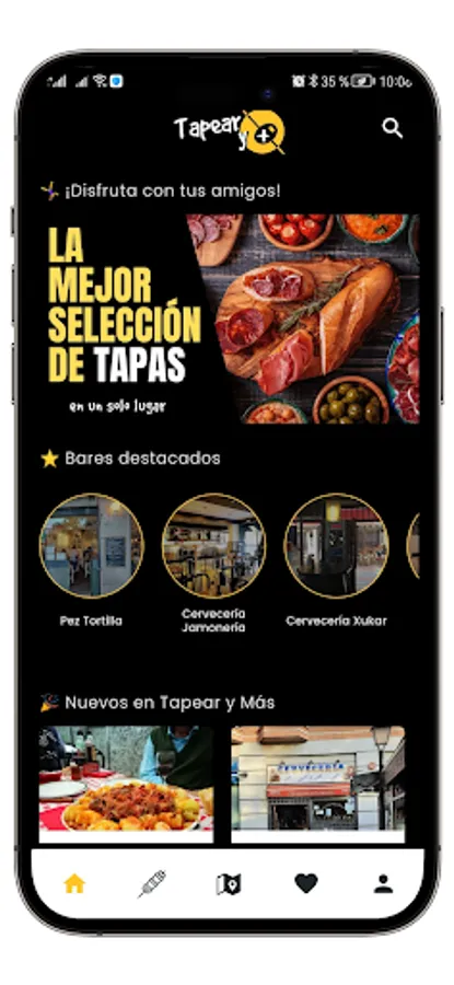 🤔 Don't know where to go for tapas near you? No problem, Tapear y Más shows you the closest tapas bars to your location 📍, as well as the most popular and best rated tapas by users 👩👩👧👧.