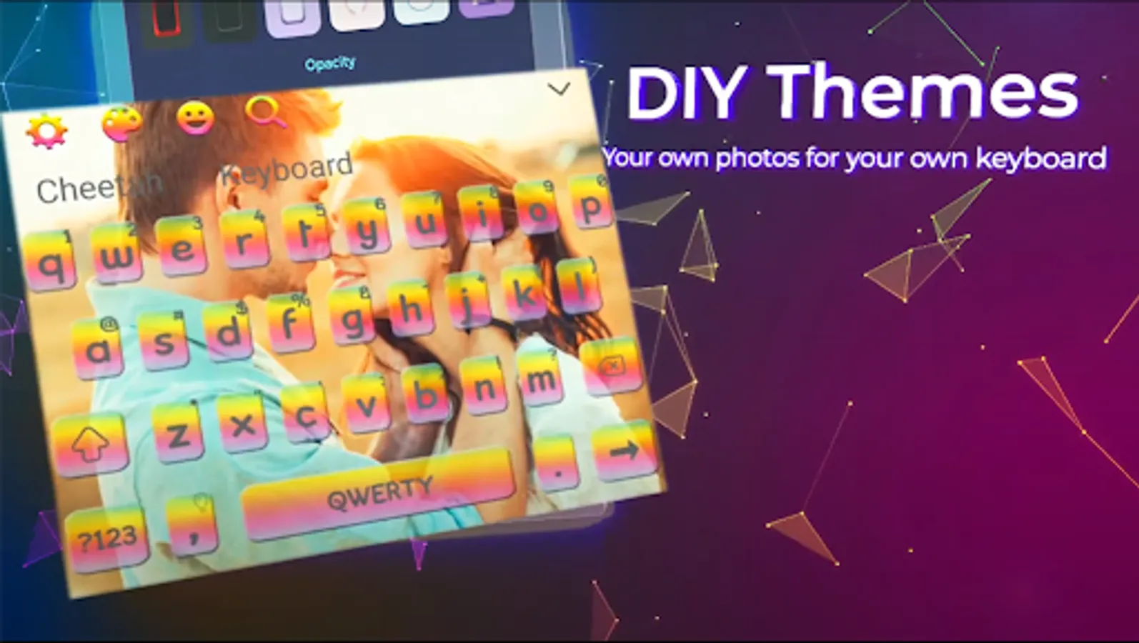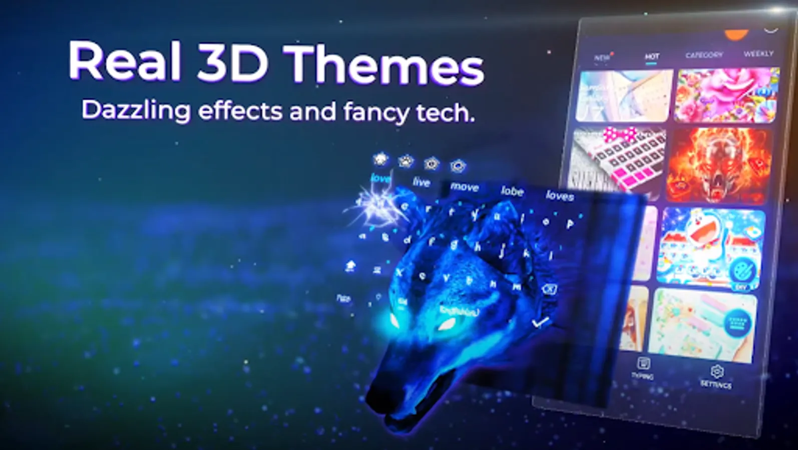 Cheetah keyboard theme provide 3d touch with beautiful background graphics is the android keyboard app for displaying cool 3d effects while typing. Chettahkeyboard offer personalized themes to create your own themes. Try diy themes with cheeta keyboard and change background wallpaper with your own photos. Emoji and swipe will always give fast typing and changing fonts and color of the keyboard. Fast swype offer swiping function just use fingers to swype through keyboard. No need to input text or letters for typing speed, just use chetahkeybord and enjoy auto correction function. All language keyboard automatically correct your typing and make it easier. Correct your typos and make it possible to improve gesture typing. cheetah keyboard version provide next word suggestion and smart reply accuracy. Typing mistakes are annoying and chetah keyboard will always focus on auto corrections. chetahkeybord help users from different typing difficulties while communication and offering voice typing keyboard. We offer cheetah keyboard themes a vast variety of gradient themes and neon blue tech themes.