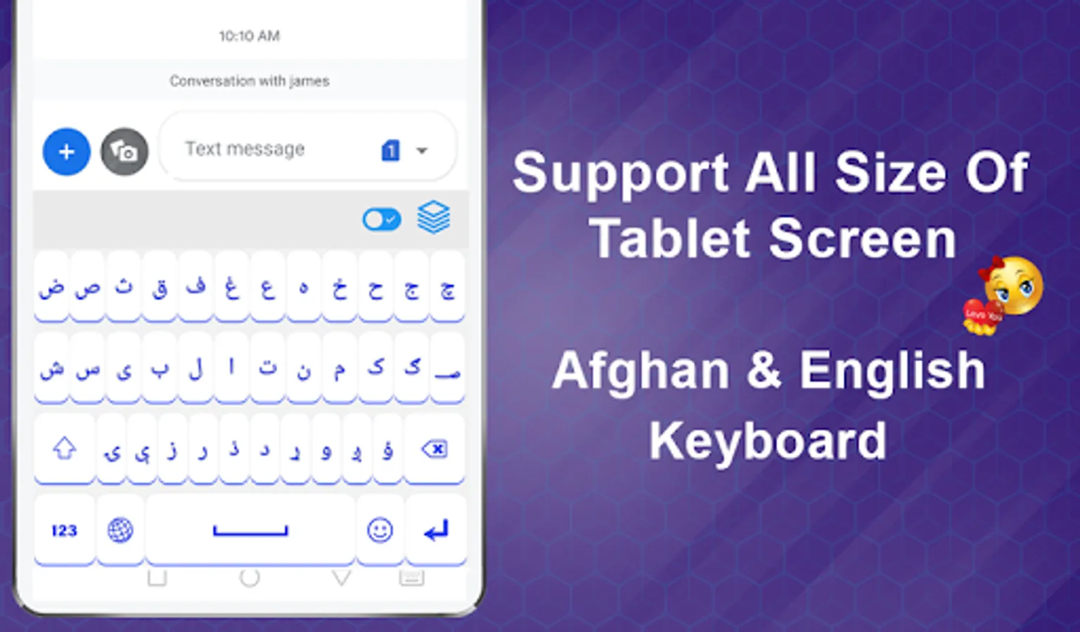 It has afghan alphabets with custom themes, cute emojis, stylish stickers. English Afghan keyboard is double keyboard of Pashto English alphabets, characters, numbers. Pashtu Keyboard for android is multilingual keyboard in search store.