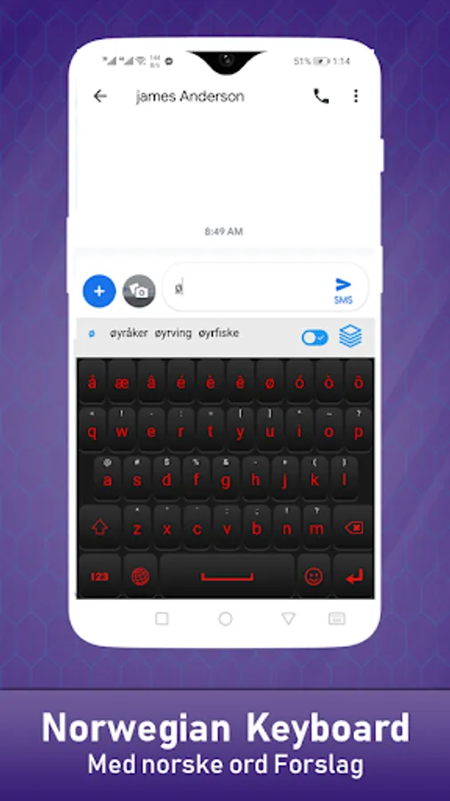 Decorate your phone with Norwegian English keyboard for texting fast. As you are smart, so let’s use smart keyboard themes with beautiful keyboard for girls and jokes keyboard with Norwegian typing app. This is big keys for typing keyboard apps is multiple keyboard with large letters keyboard. This is simply big button keyboard with large letters and cute sticker keyboard with emoji keyboard for your own phone. Switch English to Norwegian keyboard and use fancy keyboard with face emoji keyboard like smileys, emoticons and cute keyboards themes for girls. Beautiful neon blue keyboard use as background keyboard app with latest Norwegian Keyboard.