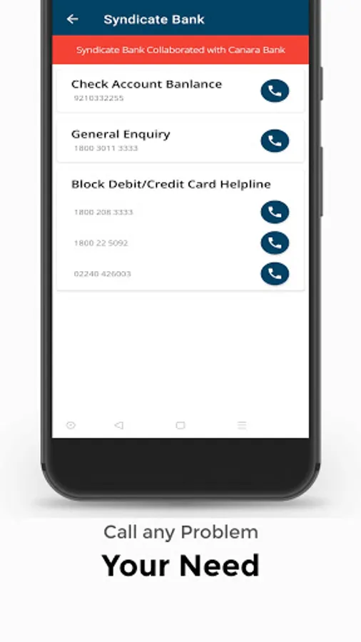 All bank toll free number available and single click directly connected to your bank customer support and also check account balance and mini statement and single call get statemented on email id.