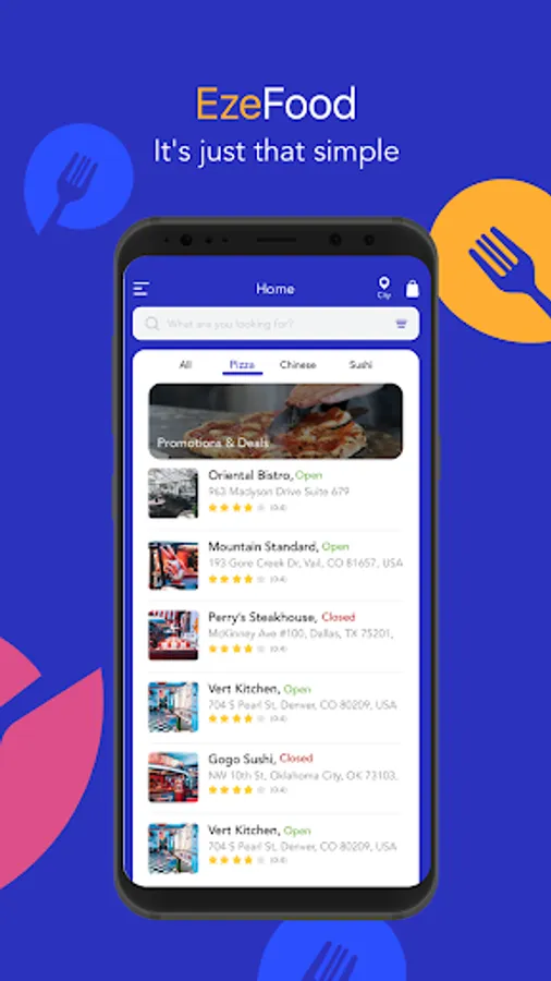 EzeFood is a food delivery service that allows you to choose your food from your favorite local restaurants easy and quick. The EzeFood app connects you with a broad range of local restaurants and food, so you can order from the full menus of your local favorites whenever you want. You can pick it up or we deliver it to your door step, it is all in your hands.
