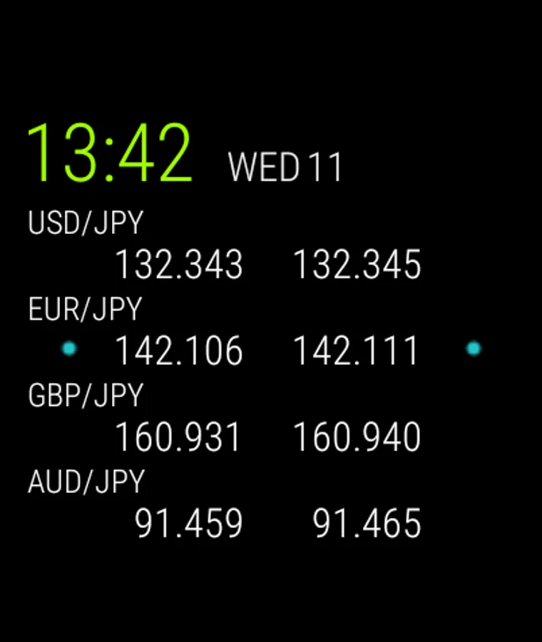 We have prepared 3 types of WatchFace that display the watch and automatically updated rates for 1/2/4 currency pairs. The optimal face is automatically displayed on the selection screen so that it fits both square and round smartwatches.