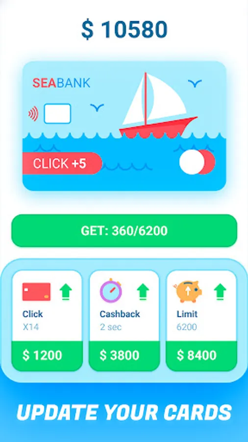 Ready to get rich and become a millionaire? Then welcome to Idle Bank Card. This is a fun clicker game in which you can earn a lot of money. Just click on the bank card and watch your income grow.