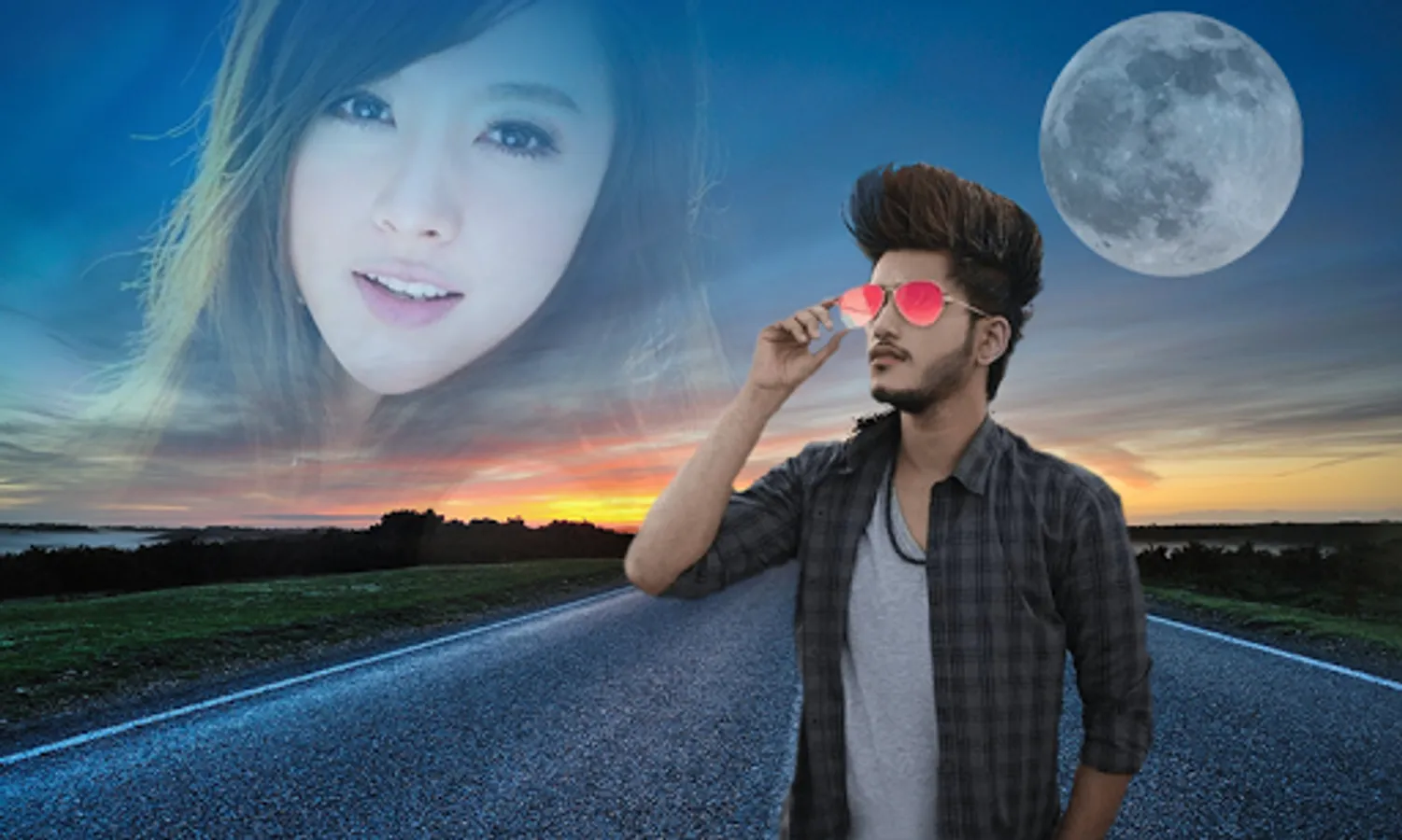 Choose a photo from the gallery, then apply the frame that you like or eraser background of your photo and replace with moon background and try stickers of the moon, wolf, boat and apply text with color and Stylish front, and you can save the photo, share with friends or upload to social networks Facebook, Twitter, email etc.