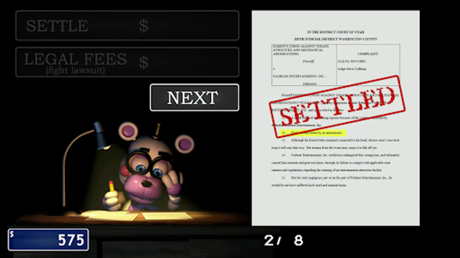 This puts an end to the assistance that we are legally obligated to provide. Fazbear Entertainment cannot be held responsible for the disappearances, deaths or mutilations that may occur as a result of operating the Freddy Fazbear's Pizza franchise.