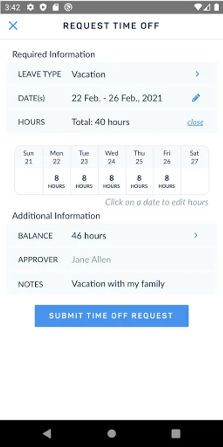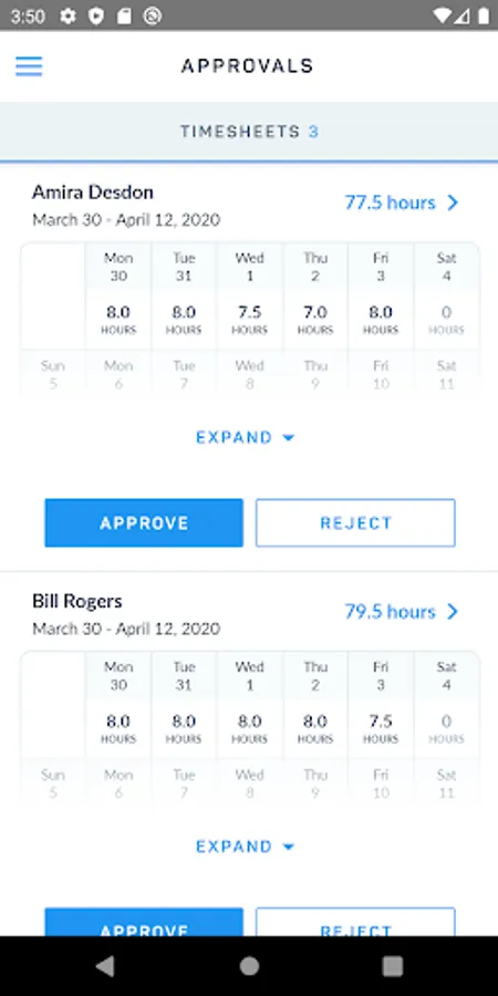 -Managers and administrators can easily review and approve / reject submitted timesheets and time off requests