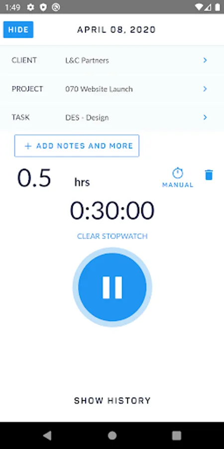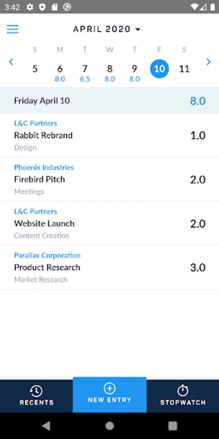 - Choose your time entry method: hour entry, start & end times, or stopwatch