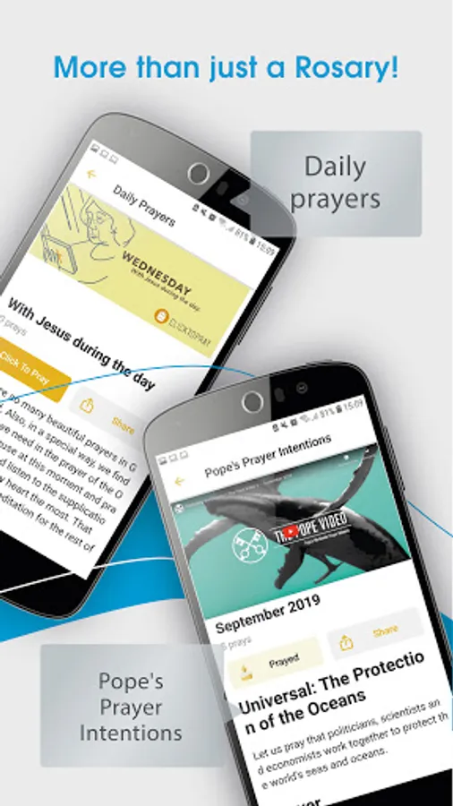 Pope Francis, in recent years, has especially asked young people to pray the rosary for peace in the world. The App Click To Pray eRosary responds to this request by accompanying you to pray for a world that is suffering deeply from its many conflicts, divisions and violence. The Click To Pray eRosary wants to reach out to