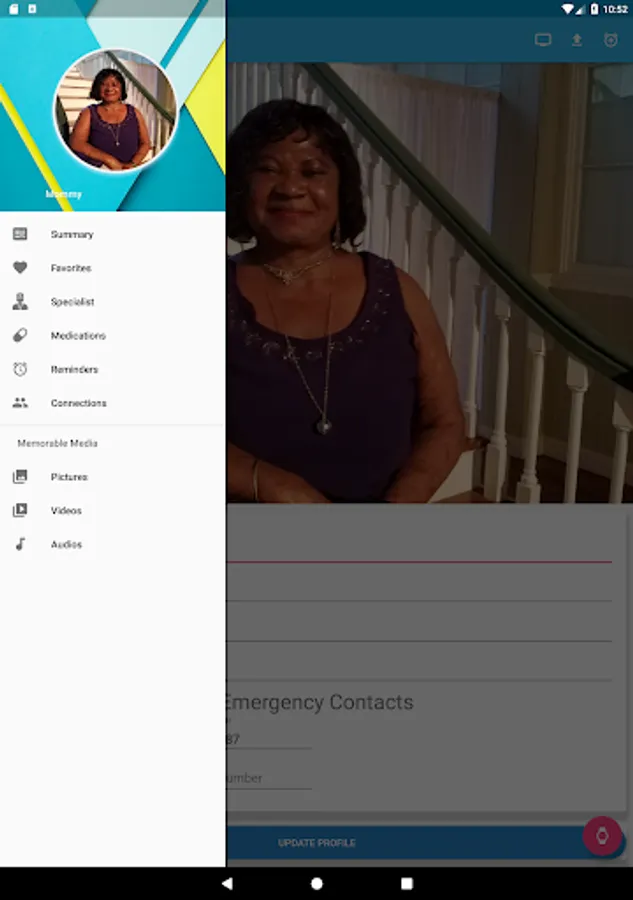 8. Audio Section: allows anyone connected to profile post memorable audio could be music or recorded audio. Please note this section puts into consideration a blind patient that needs to respond to sound that means something to them.
