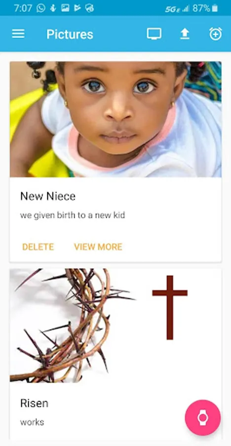 6. Picture Section: allows everyone connected to a profile post memorable pictures with a description.