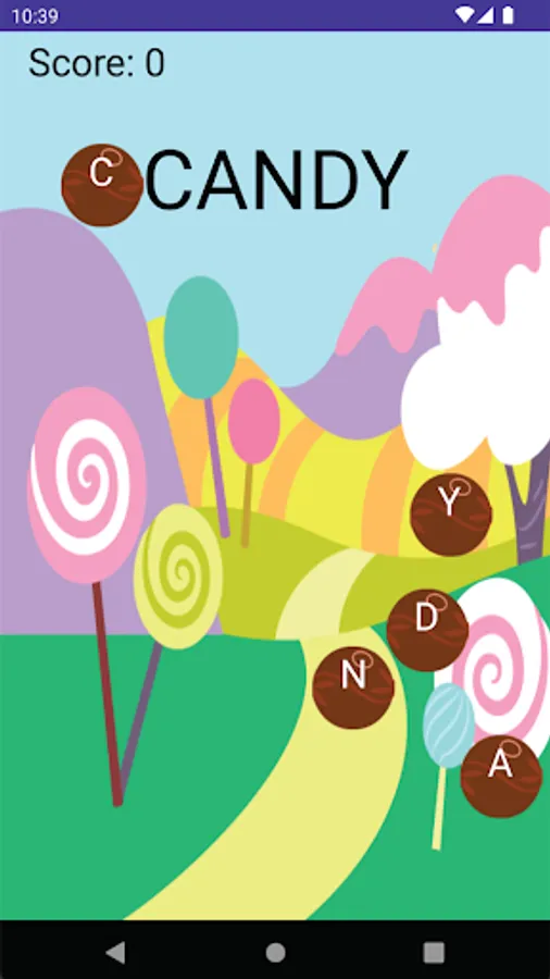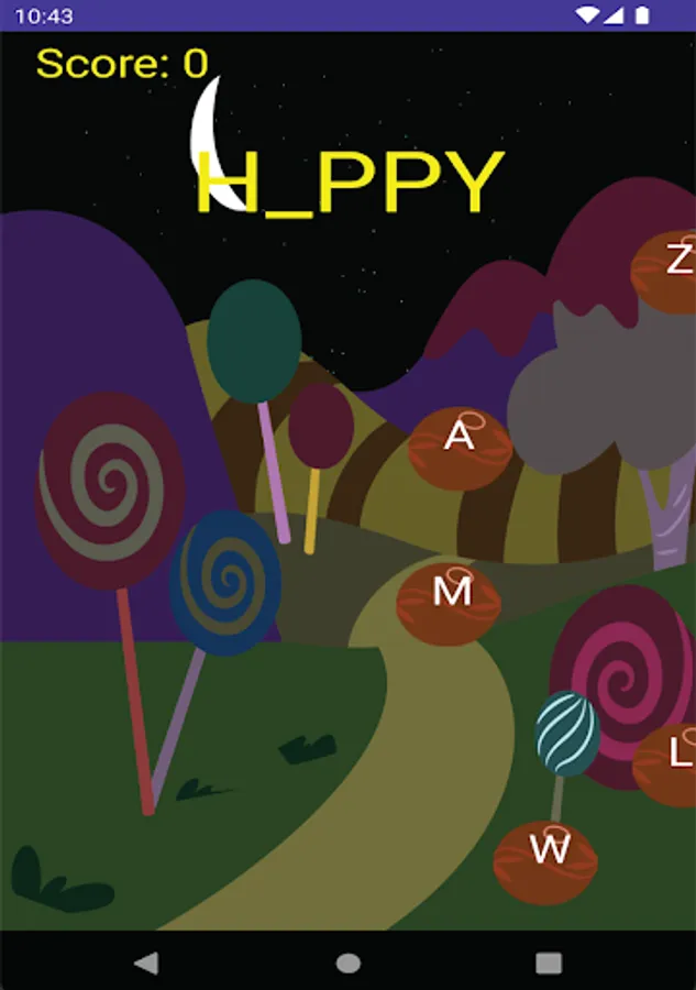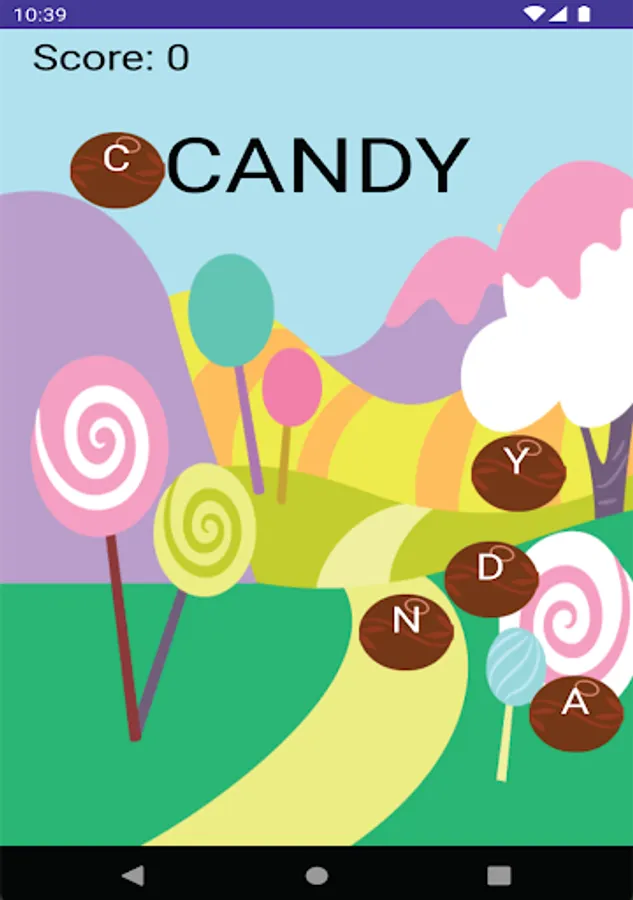 • Missing Letter: Test out your English vocabulary skills by tapping on the candy with the correct letter to fill in the blank. If you miss it, you will lose 10 points!