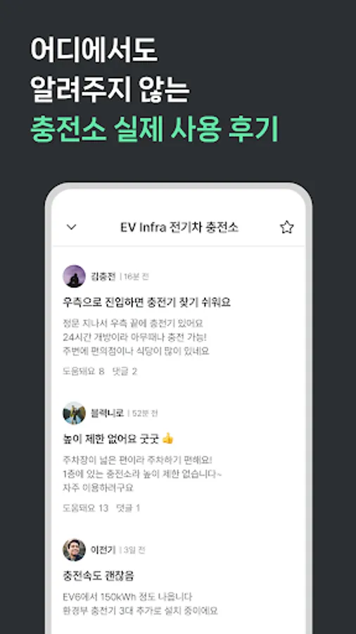You can check vivid information about failures and incorrect information for each charging station by writing and reporting reviews of charging stations.