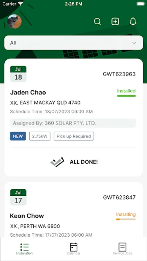 Installers can view the job details, and also be able to do the job checklist according to their retailer's requirement.