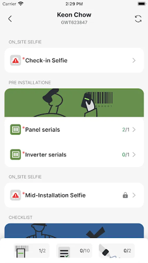Installers are able to use the barcode scanner to scan their panels & inverters serial numbers, also can take the picture either from gallery or by using the camera.