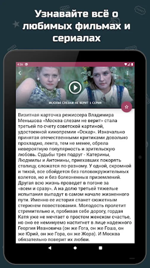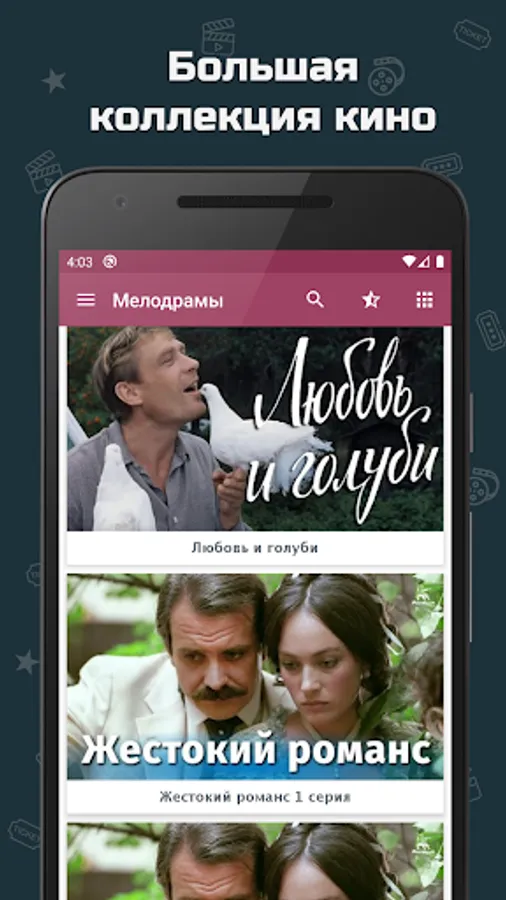 The application allows you to watch Russian cinema in the soulful genre of "melodrama".