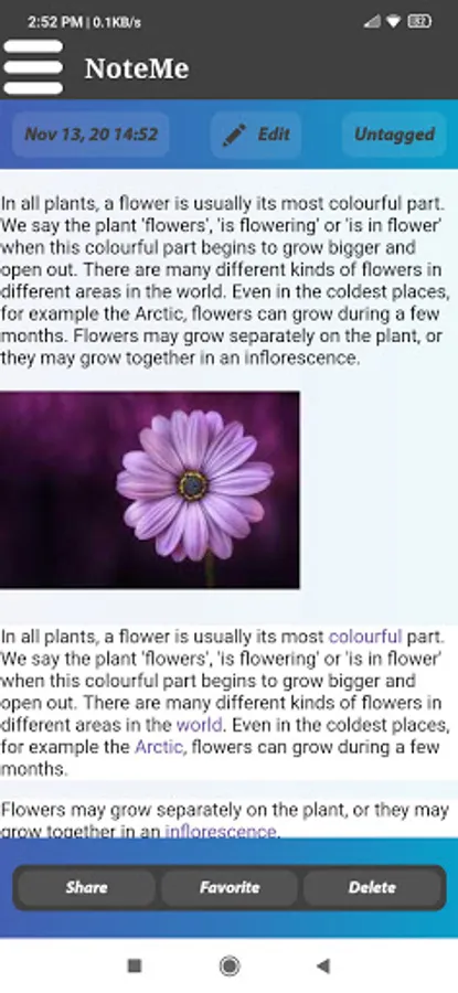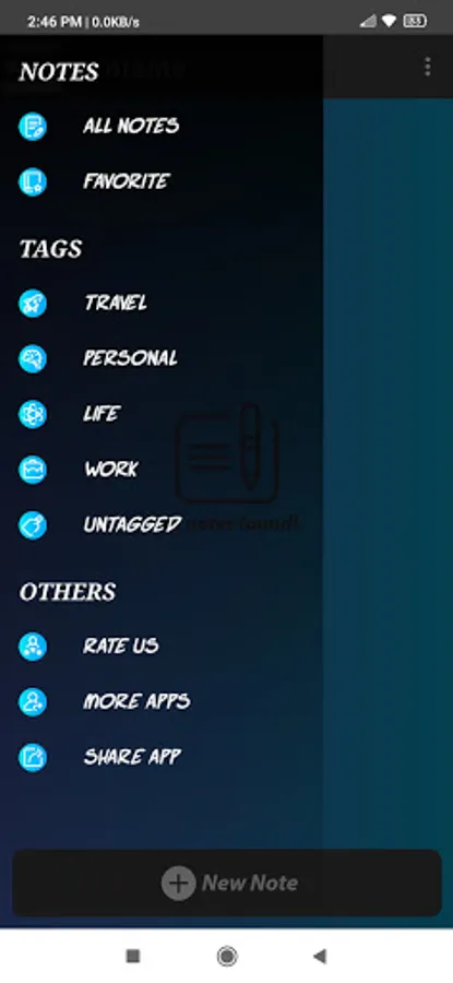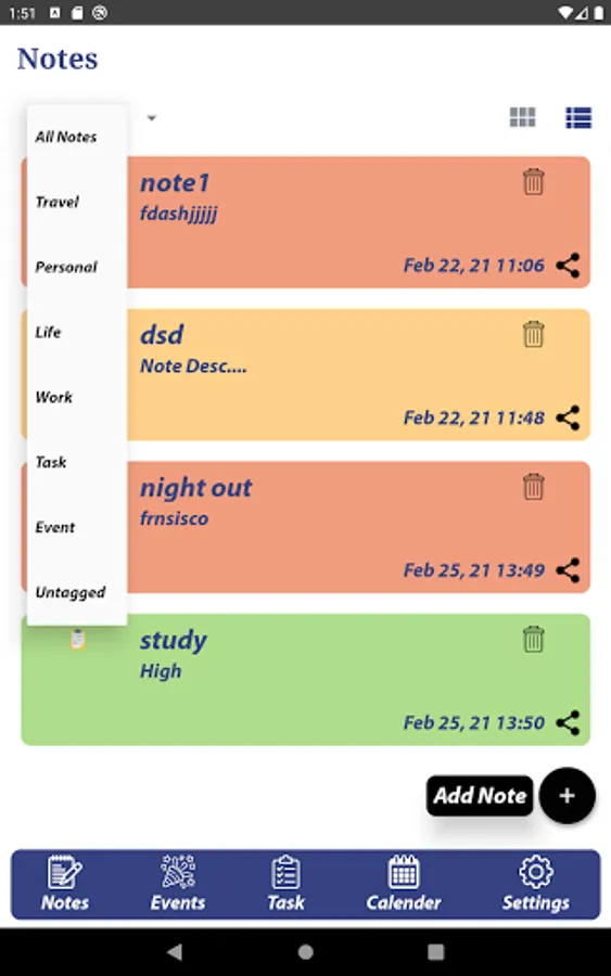 You can classified your notes in 1.TRAVELS 2.PERSONAL 3.LIFE 4.WORK 5.UNTAGGED Categories, it have best graphical interface that will make good user interaction between user and App.