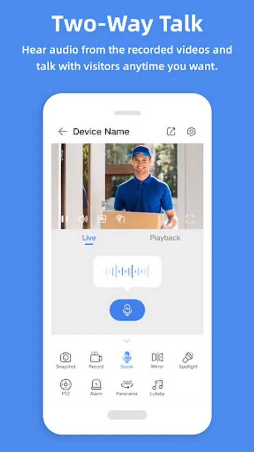6. Supports two-way audio to hear and talk back to anyone you want.